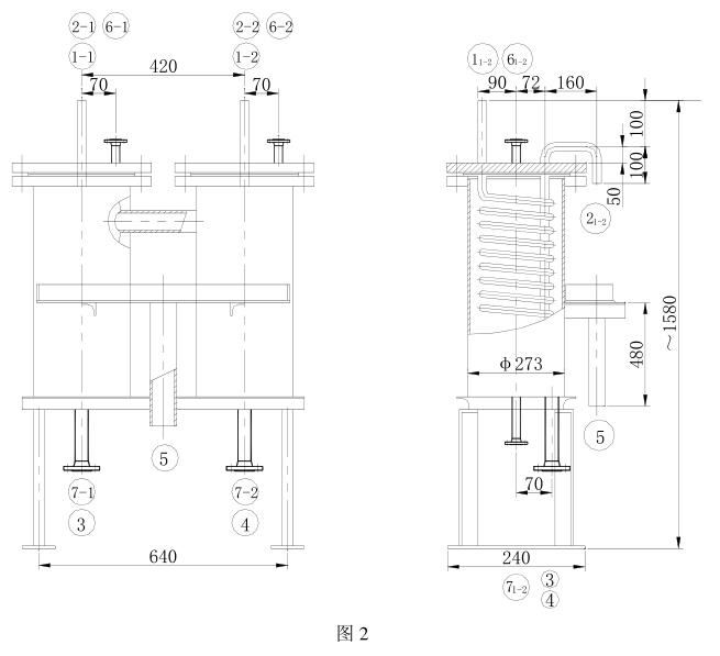 2、并双联取样冷却器(SCY-IB 型)见图2,主要性能参数见表3,管口说明见表4。