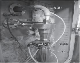 三,对旧锅炉煤粉取样器进行优化改进,在进气管、出气管和下灰管位置加装压缩空气吹扫装置;在旋风筒外部加装震动器,以利于湿灰掉落,如图5所示。