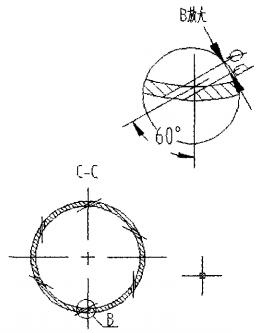 结构简单,便于加工制造和安装。它由具有一定长度、大小不等的不锈钢管,在管壁上开有一定数量、尺寸不等的进水小孔制成。进水小孔与管壁在水平方向和垂直方向分别成一定角度。本次试验,膜式喷管进水小孔孔径为d=φ4.2mm,与管壁在水平方向成60°,在垂直方向成10°,如图1所示。