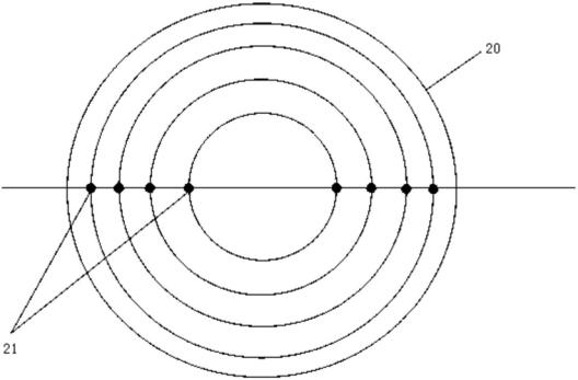 例中的煤粉取样器,锅炉飞灰取样器装置结构简单,取样时间短。其通过按等面积原理把煤粉管道20的横截面分成多个等面积同心圆环,直径与圆环交点处定为取样点21,使取样口13的圆形与取样点21相重合,取样时间2-3分钟,在一个取样周期内实现定时定点取样,使取得的样品更具有代表性。