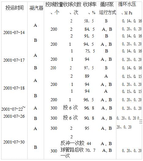 表1胶球系统试运情况