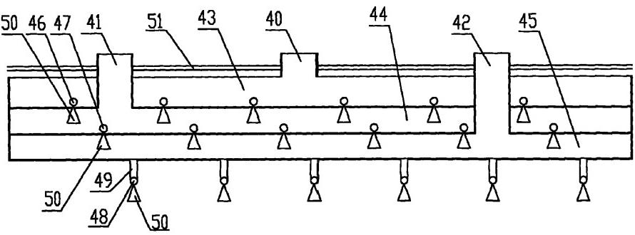 进水支管均匀排布于真空除氧器筒体内部;每台锅 炉所对应的进水支管与其它锅炉所对应的进水支管在空间内平行;每台锅炉所对应的 进水母管与其它锅炉所对应的进水母管在空间内平行;进水母管为分配管或类分配 管,进水支管为普通管材。