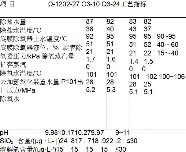 ①除氧水温度控制在104~106℃,热力除氧器工作压力控制在20kPa左右;