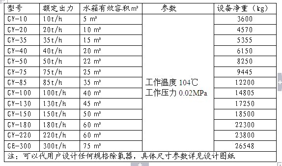 四、新型旋膜式除氧器参数